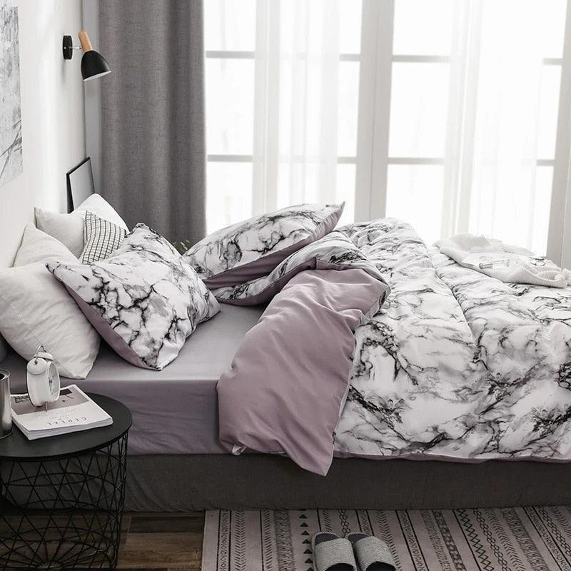 Sinta o toque suave do algodão combinado com a elegância do mármore no jogo de cama Marble Dreams